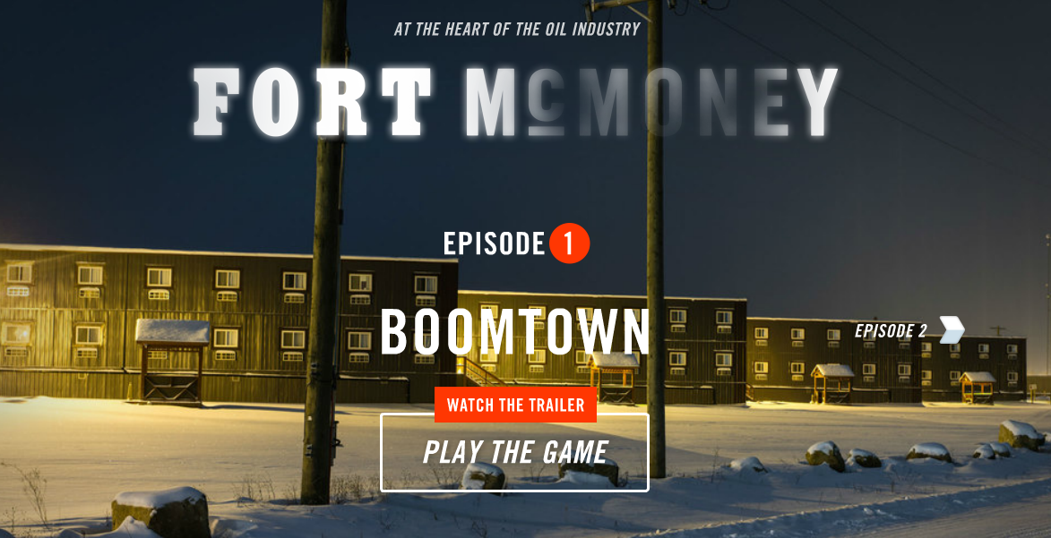 “Where film marries video game.” Fort McMoney is a web documentary and strategy video game about Fort McMurray and Canada’s tar sands. Directed by David Dufresne, produced with the NFB.
